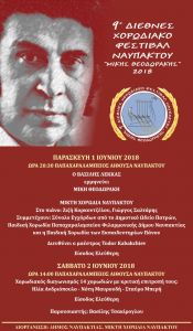 Tο 9ο Διεθνές Χορωδιακό Φεστιβάλ Ναυπάκτου «Μίκης Θεοδωράκης», θεσμός που έχει καθιερωθεί από το 2001 και οργανώνεται από το Δήμο Ναυπακτίας και τη Μικτή Χορωδία Ναυπάκτου, την 1η και 2 Ιουνίου 2018.