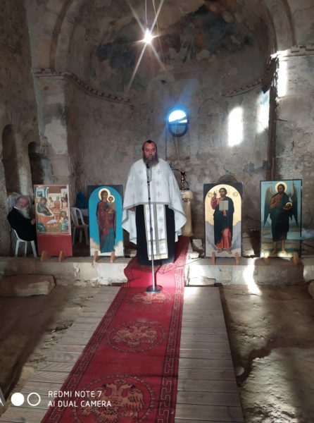 Οι στιγμές ήταν ιδιαίτερα συγκινητικές καθώς ο ναός, κτίσμα της βυζαντινής περιόδου, αναστηλώθηκε πρόσφατα με τους πιστούς της περιοχής να μπορούν πλέον, μετά από αρκετά χρόνια, να δοξολογούν τον Τριαδικό Θεό και τον Άγιο Ιωάννη τον Πρόδρομο.
