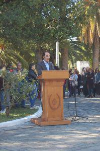 Εδώ, από τον Κήπων των Ηρώων της Ιερής Πόλης Μεσολογγίου, στέλνουμε το μήνυμά μας. Οι Ιδέες και οι Αξίες δεν έχουν σύνορα. Αφορούν την ανθρώπινη κοινότητα στο σύνολό της. Έχουμε την υποχρέωση να τις προστατέψουμε και να τις παραδώσουμε στις επόμενες γενιές».