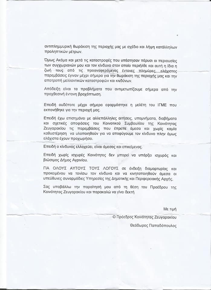 Την παραίτηση του υπέβαλε την περασμένη Παρασκευή ο πρόεδρος της Τοπικής Κοινότητας Ζευγαρακίου ο κος Παπαδόπουλος Θεόδωρος στο δήμαρχο Αγρινίου, Γιώργο Παπαναστασίου, όπως είχε γράψει το agriniosite.gr ΔΕΙΤΕ ΕΔΩ όμως σήμερα ανακοινώθηκαν οι λόγοι που τον οδήγησαν σε αυτή την παραίτηση.