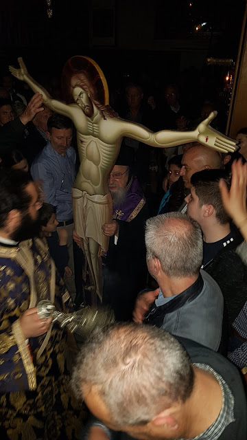 Στο τέλος της Ακολουθίας ο Σεβασμιώτατος τόνισε: «Μας αξίωσε ο Κύριος μας με την αγάπη Του να ζήσουμε μια ακόμα Ακολουθία των Αχράντων Παθών Του. Πως φεύγουμε τώρα από τον Ναό; Μόνο με συγκινησιακή κατάσταση; Βλέπουμε τον Εσταυρωμένο και η αγία Του εικόνα φέρει εμπρός μας το φρικτό Πάθος. Ουδέποτε εμίσησε ο άνθρωπος τον συνάνθρωπό του, όσο εμίσησε ο άνθρωπος τον Εσταυρωμένο Κύριο. Ας ευχηθούμε αγαπητοί να πιστέψουμε θερμά στον Κύριο, να τον αγαπήσουμε, να τον υπακούσουμε και να ζήσουμε την Κυριακή αληθινή Ανάσταση και να γίνουμε άξιοι της αιωνίου Αναστάσεως».