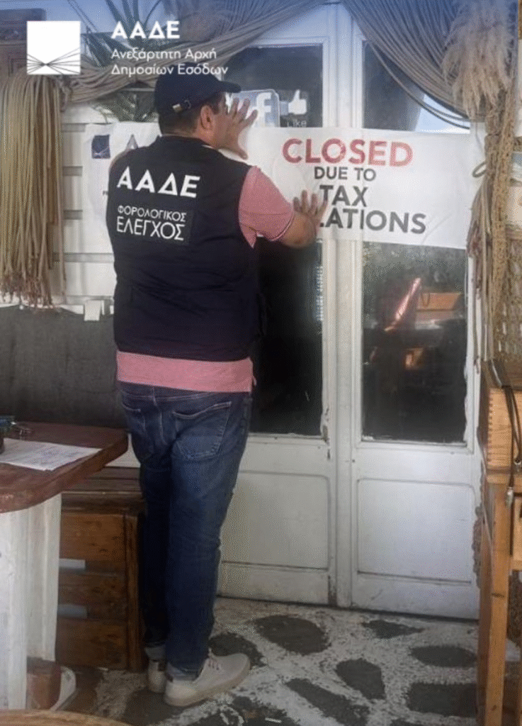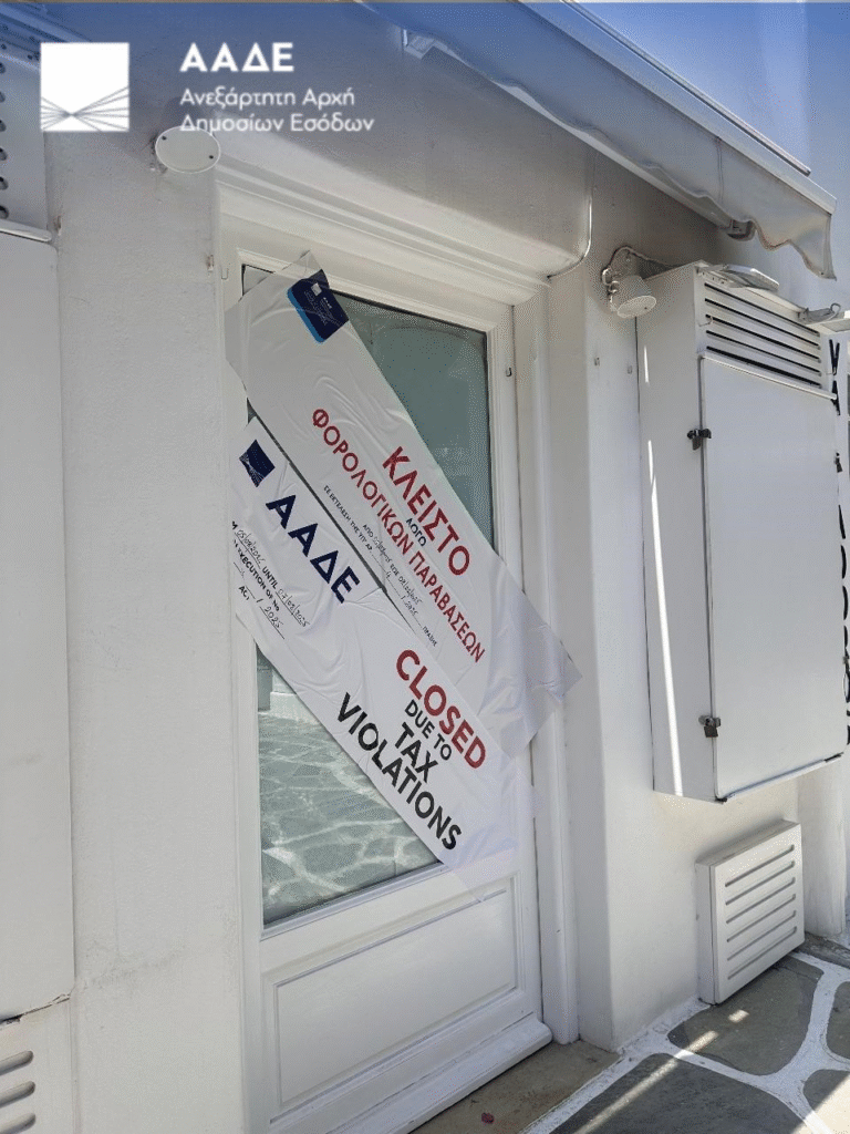 - Στη Μύκονο, κατάστημα ειδών λαϊκής τέχνης δεν είχε κόψει αποδείξεις – για το 2021 και 2022 – 107.000 ευρώ, εισπράττοντας και μη αποδίδοντας ΦΠΑ 26.000 ευρώ. Επιβλήθηκε πρόστιμο 13.000 ευρώ και κλείσιμο για δύο ημέρες.
