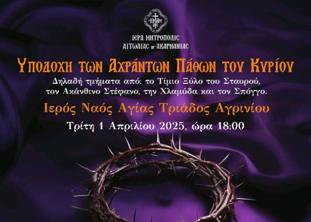 Αγία Τριάδα Αγρινίου: To πρόγραμμα υποδοχής των αχράντων παθών του Κυρίου
