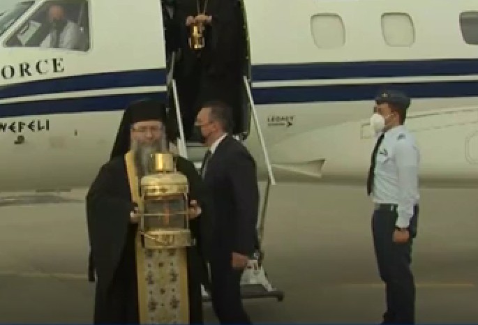 Υπενθυμίζεται ότι φέτος δεδομένης της συγκυρίας, σε αντίθεση με τα προηγούμενα χρόνια, η άφιξη του Αγίου Φωτός έγινε χωρίς τιμές αρχηγού κράτους και με τη δέουσα σεμνότητα.