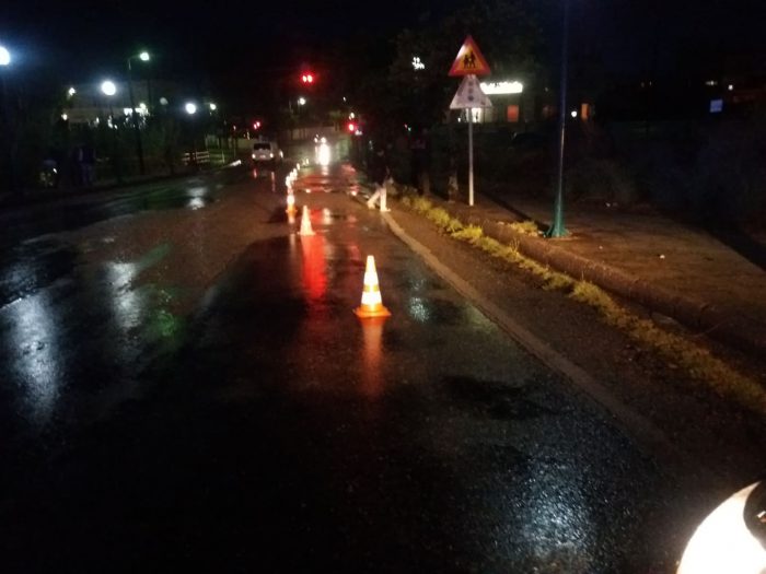 Η τροχαία ρυθμίζει την κυκλοφορία διότι υπάρχει κίνδυνος ατυχήματος.Αυτή την ώρα συνεργεία της ΔΕYΑA μεταβαίνουν στο σημείο για την αποκατάσταση της βλάβης που έχει δημιουργήσει διακοπή της υδροδότησης σε μεγάλο τμήμα του Αγίου Κωνσταντίνου.