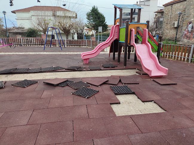 Άγνωστοι προκάλεσαν καταστροφές στο δάπεδο αλλά και στα κάγκελα της περίφραξης με αποτέλεσμα να τίθεται πλέον σε κίνδυνο η ασφάλεια των παιδιών.