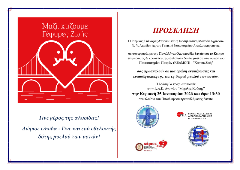 Αγρίνιο: Δράση ενημέρωσης για τη δωρεά μυελού των οστών