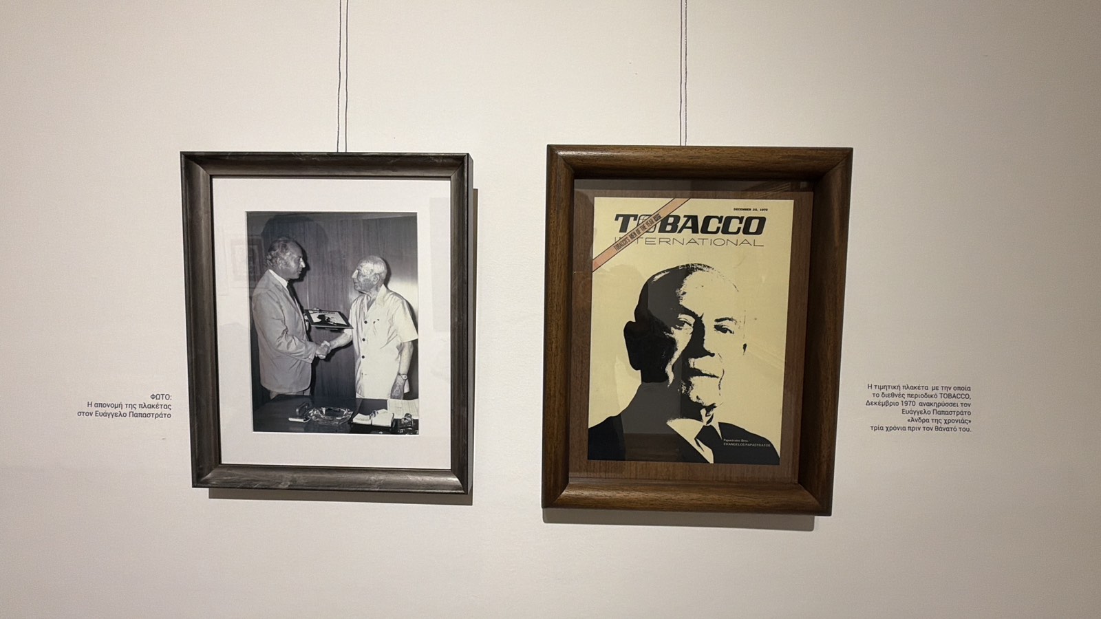 Ιδιαίτερη θέση στην έκθεση καταλαμβάνουν δύο εμβληματικά έργα. Το πρώτο, «Η καλλιέργεια του καπνού» (1960), αποτελεί μνημειακή σύνθεση των Τάσσου και Λουκίας Μαγγιώρου, φιλοτεχνημένη κατόπιν παραγγελίας της εταιρείας Παπαστράτος για τον Εθνικό Οργανισμό Καπνού. Το δεύτερο αφορά στην προσωπογραφία του Ευάγγελου Παπαστράτου, έργο του Γιάννη Μόραλη, το οποίο παρουσιάζεται για πρώτη φορά στο κοινό και εντάσσεται στα πρόσφατα αποκτήματα της μόνιμης συλλογής της Δημοτικής Πινακοθήκης, ως δωρεά του Δημήτρη Γκέρτσου.
