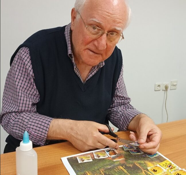 Μια πρωτότυπη και εντυπωσιακή έκθεση στην οποία ο καλλιτέχνης, με αριστοτεχνική δεξιοτεχνία – μεταμορφώνει εκατοντάδες γραμματόσημα τα οποία χρησιμοποιεί ως “ψηφίδες” δημιουργώντας κολάζ που μοιάζουν με ζωγραφικά ψηφιδωτά όπου αποτυπώνονται τοπία, συνθέσεις ή αντικείμενα.