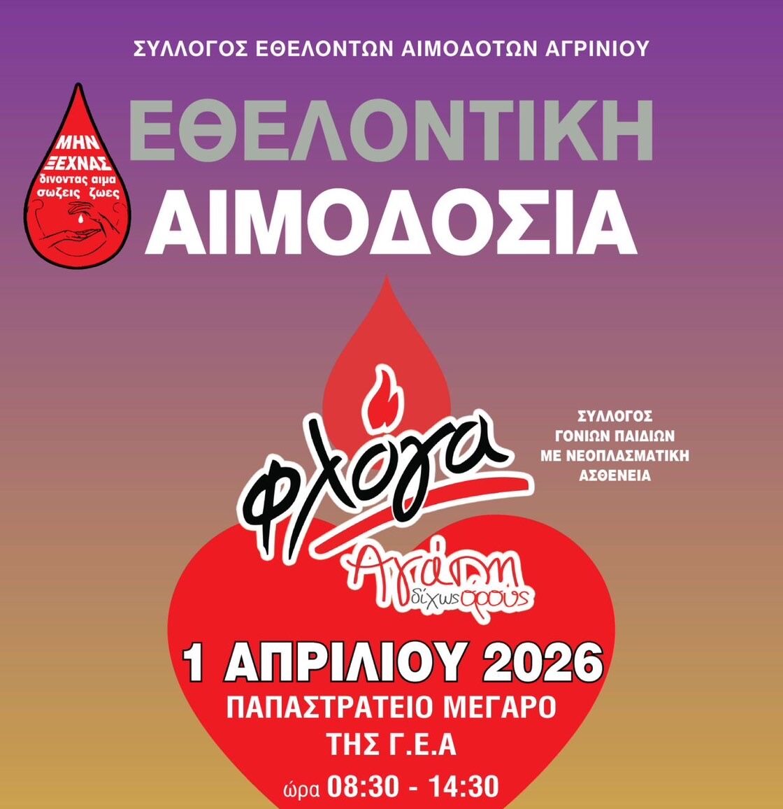 Η συγκεκριμένη αιμοδοσία είναι αφιερωμένη στο έργο της «Φλόγας», του Συλλόγου Γονιών Παιδιών με νεοπλασματική ασθένεια, στηρίζοντας έμπρακτα τα παιδιά που δίνουν τη δική τους μάχη.