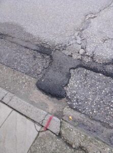 Οι κάτοικοι της περιοχής αναφέρουν ότι το οδόστρωμα έχει υποστεί φθορές και το τελευταίο διάστημα έχουν πέσει κάποια «μπαλώματα» ασφάλτου που όμως με μια νέα βροχή αποκολλώνται και τα κομμάτια μένουν στο σημείο ή εκτοξεύονται μέσω των διερχόμενων οχημάτων σε αυλές και παράθυρα. «Βγαίνουμε μόνοι μας και σκουπίζουμε τα κομμάτια ασφάλτου(φωτο) για να μην συμβαίνει αυτό», αναφέρει κάτοικος της περιοχής.