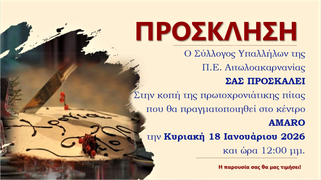 Ο Δήμος Ξηρομέρου και το προσωπικό του, σας προσκαλεί στη κοπή της Πρωτοχρονιάτικης Πίτας.