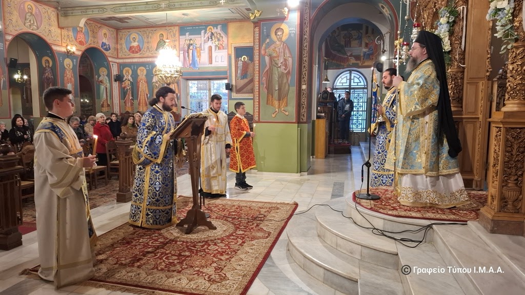 Ο Σεβασμιώτατος ιερούργησε στον Ιερό Ναό με αφορμή τα ονομαστήρια των δύο εκ των τριών Εφημερίων, του Πρωτοπρ. Ιωάννου Γκιάφη και του Πρωτοπρ. Ιωάννου Λουκά, στους οποίους ευχήθηκε κατάλληλα και για την ονομαστική τους εορτή και για τη νέα χρονιά.