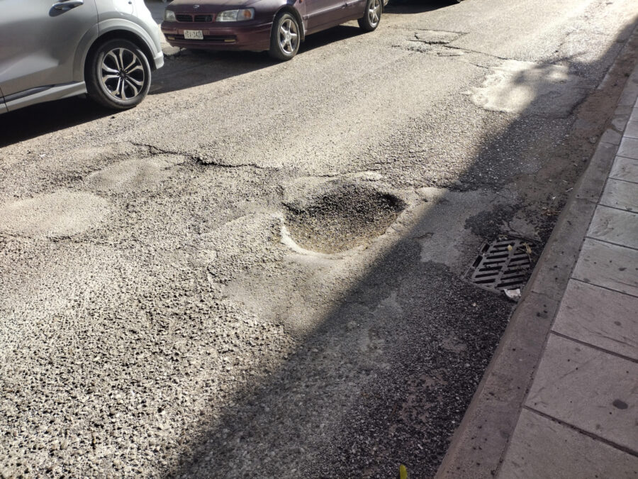 Είναι μεγάλη, είναι προς τον αριστερό τροχό του αυτοκινήτου και θέλει καλό ελιγμό για να την αποφύγεις σε έναν εξαιρετικό στενό δρόμο από τους γνωστούς του Αγρινίου που δεν αλλάζουν, λόγω ρυμοτομίας. Αν έχεις την ατυχία να κινείσαι με μηχανή, δε (και μάλιστα νύχτα), κινδυνεύεις να… εκτοξευτείς ή να σπάσεις το μεταφορικό σου μέσο.