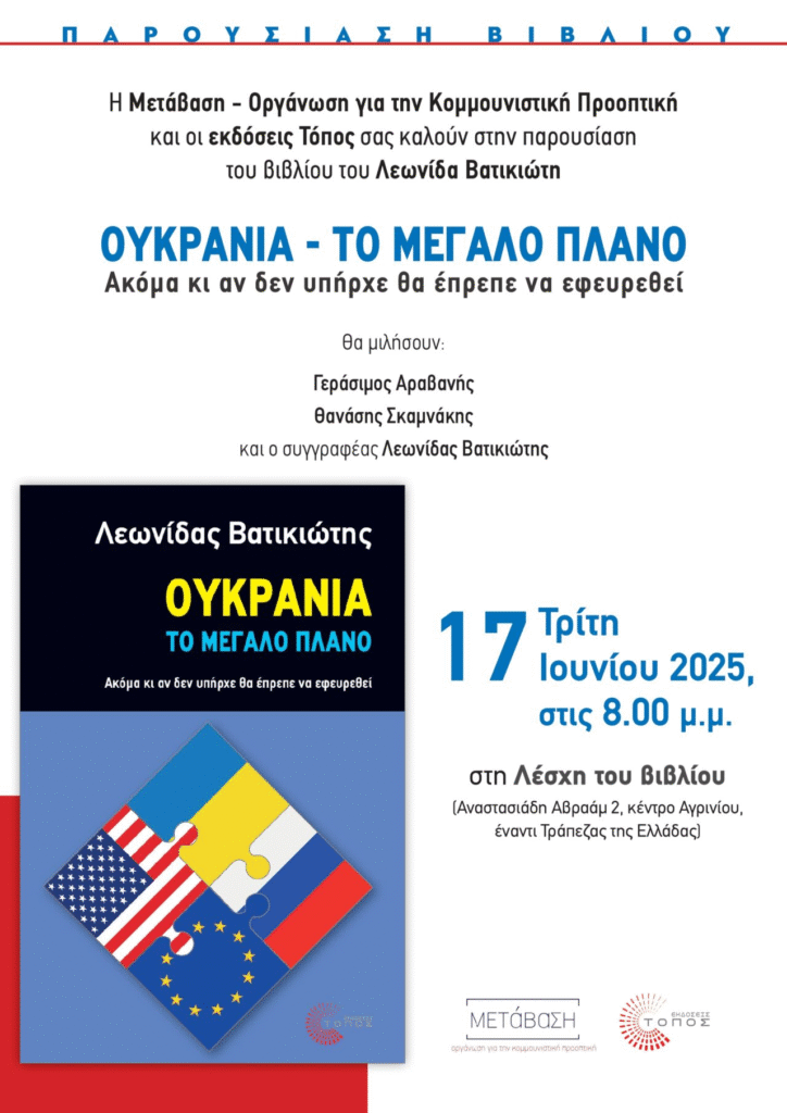 Αγρίνιο: Παρουσιάζεται το βιβλίου του Λεωνίδα Βατικιώτη «Ουκρανία – Το Μεγάλο Πλάνο»