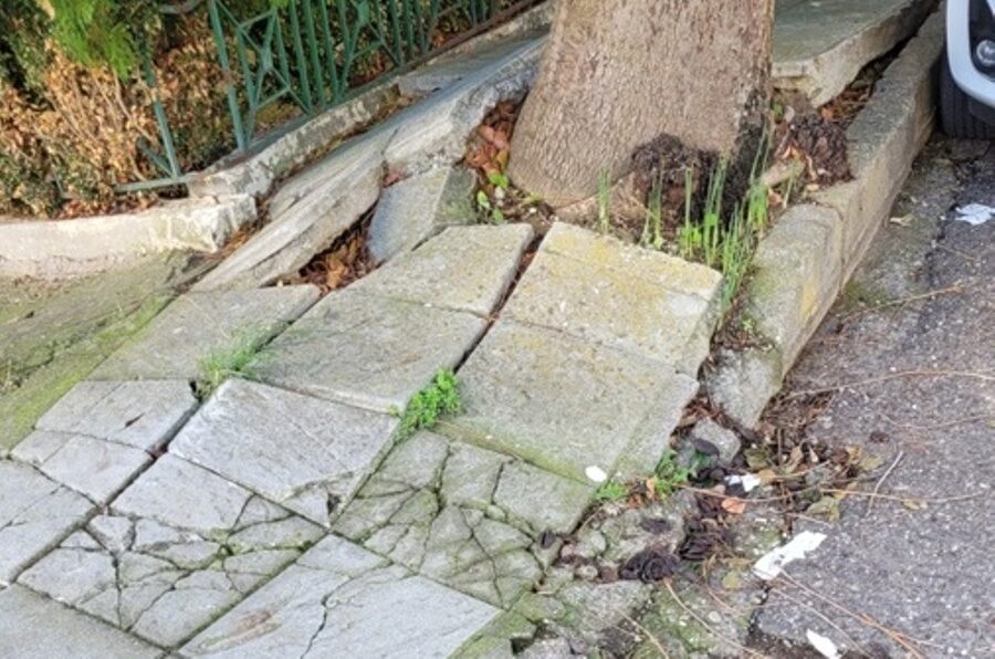 Μάλιστα όπως αντιλαμβάνεται κανείς από το φωτογραφικό υλικό τα πεζοδρόμια είναι απροσπέλαστα από τους πεζούς, αφού θα πρέπει, εκτός από τις χαλασμένες πλάκες, να αποφύγουν και άλλα εμπόδια. Κάτι που έχει σαν αποτέλεσμα οι πεζοί να περπατούν στο δρόμο με κίνδυνο κάποιου ατυχήματος ενώ ήδη έχουν σημειωθεί ευτυχώς προς ώρας μικροατυχήματα. Εάν πάλι είσαι γονιός με καροτσάκι ή άτομο με κινητικές δυσκολίες, αποκλείεται να μπορέσεις να κινηθείς στο πεζοδρόμιο της φωτογραφίας! Και φυσικά δεν πρέπει να ξεχνάμε ότι είναι μια περιοχή πυκνοκατοικημένη!