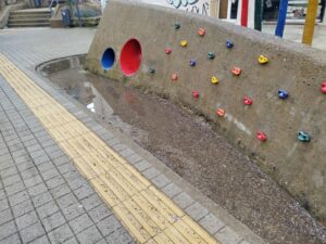 Όμως δεν συμβαίνει κάτι τέτοιο κι αν υπολογίσει κανείς τα αντιαισθητικά γκράφιτι που «κοσμούν» τον χώρο (ο αμίμητος ανόητος που έχει γεμίσει το Αγρίνιο με την λέξη «πιγκάλ» έχει χτυπήσει κι εδώ!)γίνεται αντιληπτό γιατί έχει σχεδόν γκετοποιηθεί. Ίσως κάποια παρέμβαση θα ήταν απαραίτητη, έστω και λίγους μήνες μετά την προηγούμενη…