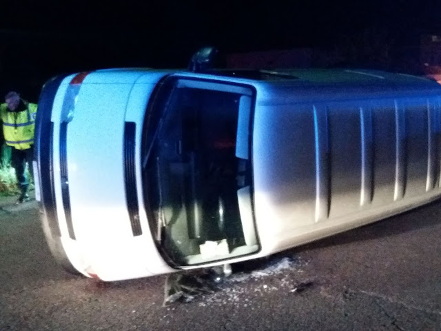 Δύο οχήματα, ένα ι.χ επιβατικό και  ένα τύπου κλούβας συγκρούστηκαν με σφοδρότητα με αποτέλεσμα το ένα εξ αυτών, η “κλούβα” να ανατραπεί εντός του οδοστρώματος.