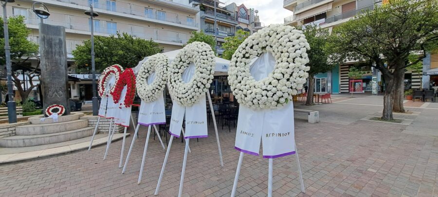Στην κεντρική πλατεία Δημοκρατίας του Αγρινίου, όπου το μνημείο προς τιμήν των τριών από τους 120 που κρεμάστηκαν τότε από τους φανοστάτες, τοποθετήθηκαν τα στεφάνια στη μνήμη τους από τον Δήμο Αγρινίου, κόμματα, την Πανελλήνια Ένωση Αγωνιστών Εθνικής Αντίστασης – ΔΣΑ παράρτημα Αγρινίου και την Πανελλήνια Οργάνωση Εθνικής Αντίστασης