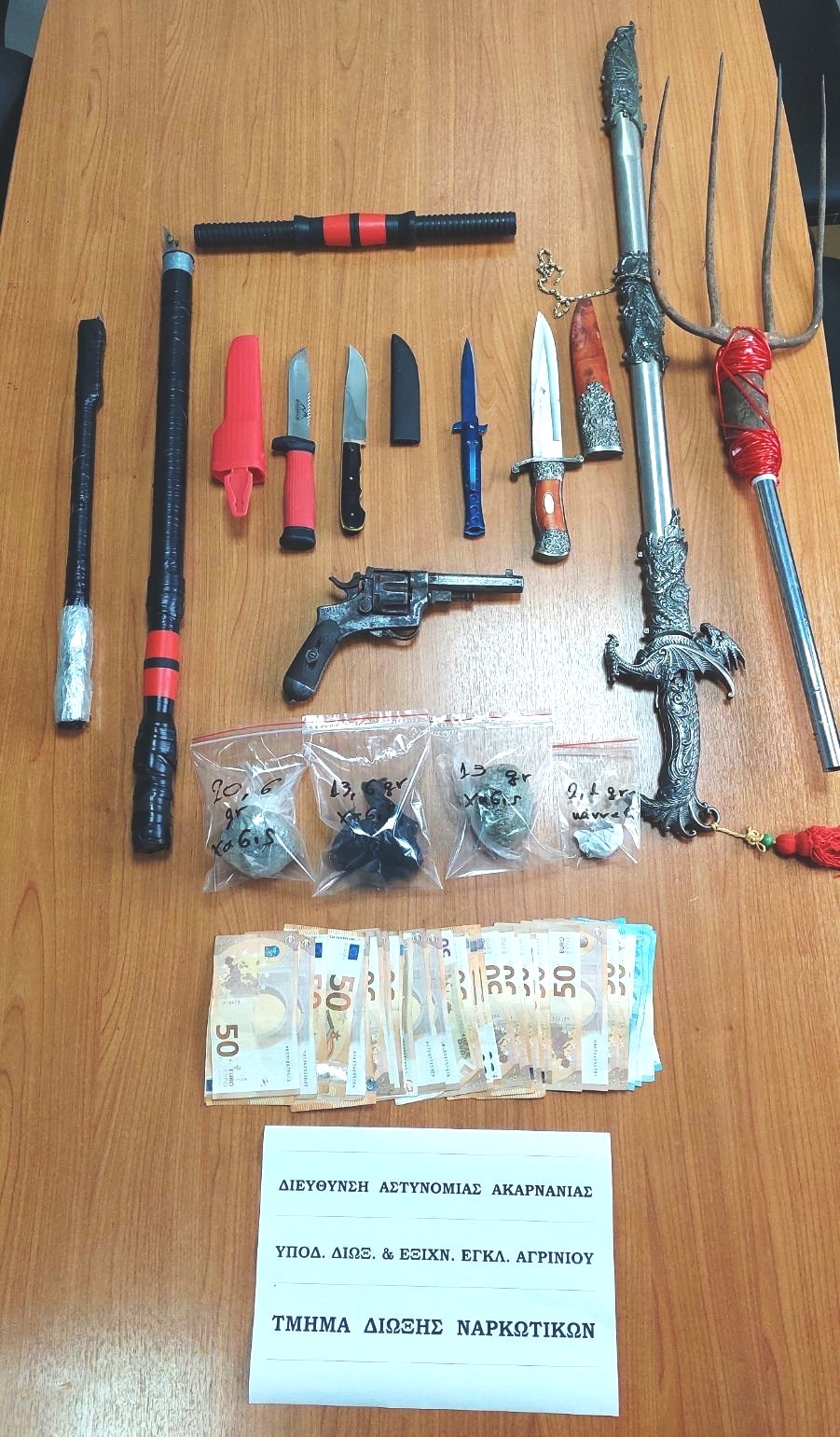 Οι συλληφθέντες θα οδηγηθούν στον Εισαγγελέα Πρωτοδικών Αιτωλοακαρνανίας.