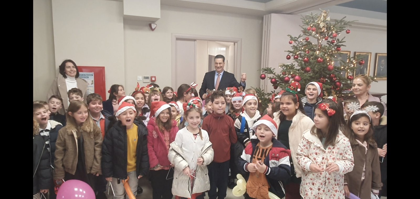 Ο κ. Παπαναστασίου αντάλλαξε ευχές και δώρα με τα παιδιά.