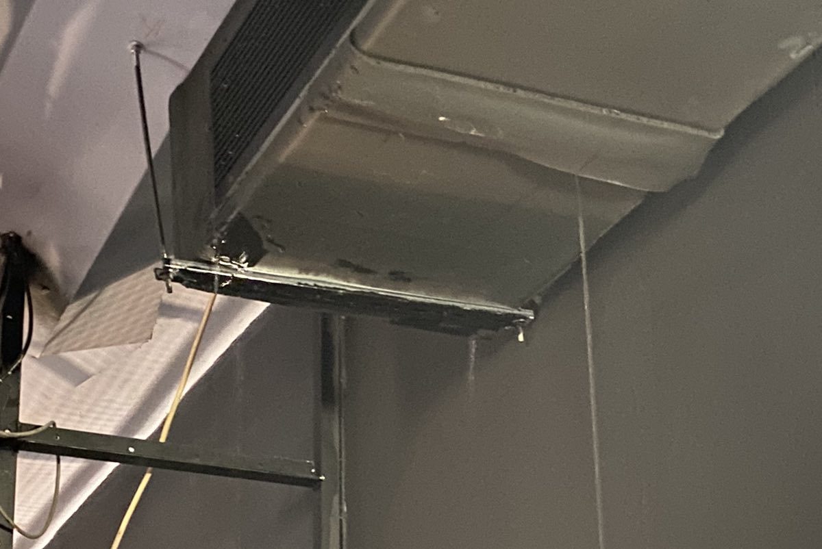 Προς μεγάλη έκπληξη των υπευθύνων καθηγητών παρατήρησαν ότι το ταβάνι έσταζε νερά με αποτέλεσμα να έχουν βραχεί τα καθίσματα του εξώστη και να υφίσταται κίνδυνος με τα καλώδια. Ο τεχνικός που ήρθε για να δει την ζημιά δεν είχε καμία οδηγία από τους υπευθύνους που να κοιτάξει ακριβώς.
