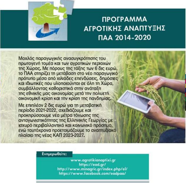 Εντός του δεύτερου εξαμήνου του έτους 2021 το ΥπΑΑΤ θα προχωρήσει στην έκδοση δύο Προσκλήσεων στο πλαίσιο της Δράσης 10.1.04 «Μείωση της ρύπανσης του νερού από γεωργική δραστηριότητα» του Προγράμματος Αγροτικής Ανάπτυξης (ΠΑΑ) 2014-2020.