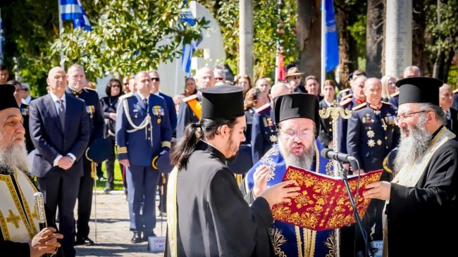 Ακολούθησε η επίσημη Δοξολογία της Εθνικής Επετείου, παρουσία του Εκπροσώπου της Ελληνικής Κυβερνήσεως, Υπουργού Εθνικής Άμυνας κ. Νικολάου Δένδια και του συνόλου των εκπροσώπων των τοπικών πολιτικών, αυτοδιοικητικών και στρατιωτικών αρχών.
