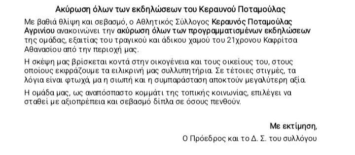 Η ομάδα μας, ως αναπόσπαστο κομμάτι της τοπικής κοινωνίας, επιλέγει να σταθεί με αξιοπρέπεια και σεβασμό δίπλα σε όσους πενθούν.