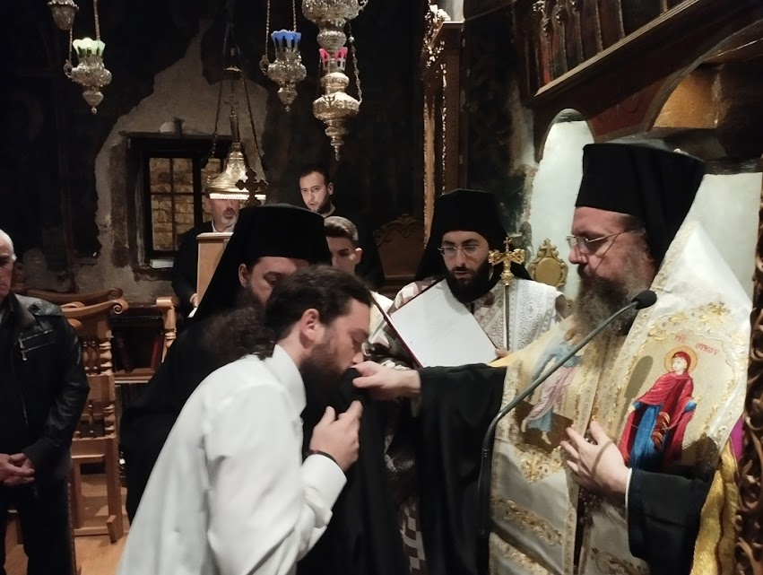 Κατά την Θεία Λειτουργία χειροτόνησε στον βαθμό του Διακόνου, τον μοναχό Ιάκωβο Τρομπούκη, τον οποίο εισήγαγε στο μοναχικό πολίτευμα, δια της Ακολουθίας της Ρασοευχής, το απόγευμα της Παρασκευής 1ης Δεκεμβρίου 2023, στην ιστορική Ιερά Μονή Εισοδίων της Θεοτόκου Μυρτιάς, μετονομάσας αυτόν από Γεράσιμο σε Ιάκωβο, προς τιμήν του νέου Οσίου και Θεοφόρου Πατρός Ιακώβου του εν Ευβοία, του «με συγχωρείτε».
