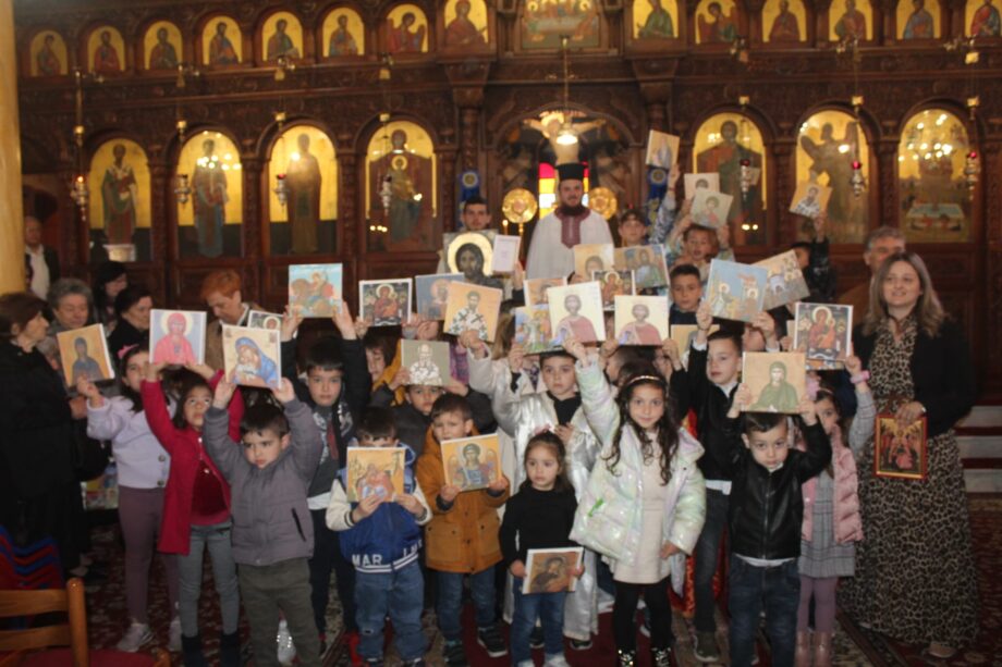 στη λιτάνευση των ιερών εικόνων συμμετείχαν και τα παιδιά του κατηχητικού σχολείου της ενορίας Αγίας Παρασκευής Αμφιλοχίας όπου κρατούσαν όλα τα παιδιά τις εικόνες των Αγίων τους