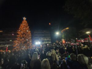 Πλατεία Δημοκρατίας μεταμορφώθηκε σε έναν λαμπερό πυρήνα χαράς, μουσικής και αισιοδοξίας, καθώς το Χριστουγεννιάτικο δέντρο της πόλης άναψε και διαχύθηκε το φως του σε κάθε γωνιά του κέντρου.