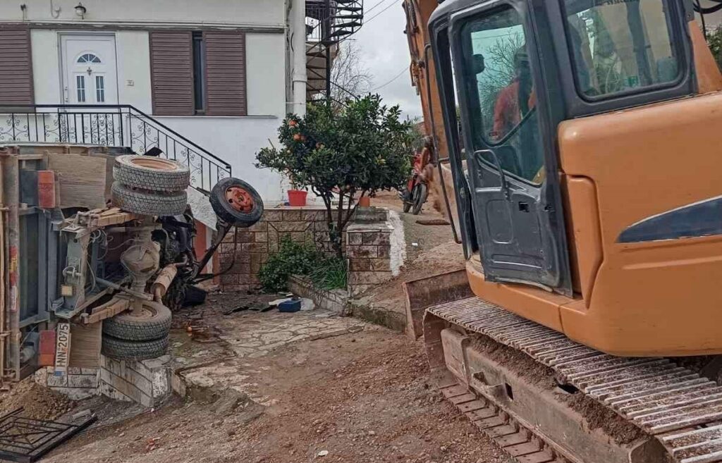 Σήμερα τις πρωινές ώρες κατά την διάρκεια εργασιών για τον υπόνομο και την αποκατάσταση του προβλήματος που δημιουργήθηκε με τον κρατήρα στον δρόμο δίπλα στην πλατεία, αυτοκίνητο που μετέφερε  υλικά έφυγε στην κατηφόρα και καρφώθηκε σε αυλή κατοικίας και ανατράπηκε.