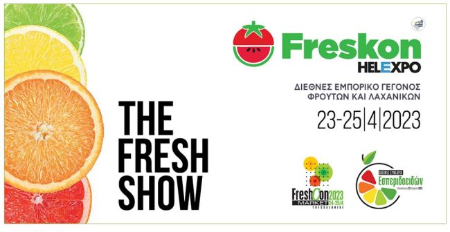 Η Περιφέρειας Δυτικής Ελλάδας και ηΑγροδιατροφική Σύμπραξη ΠΔΕ θα συμμετέχουν στην έκθεση FRESKON 2023 που θα διεξαχθεί μεταξύ 23-25 Απριλίου 2023 στο Διεθνές Εκθεσιακό & Συνεδριακό Κέντρο Θεσσαλονίκη, με στόχο την προβολή του κλάδου των Φρέσκων Φρούτων και Λαχανικών.