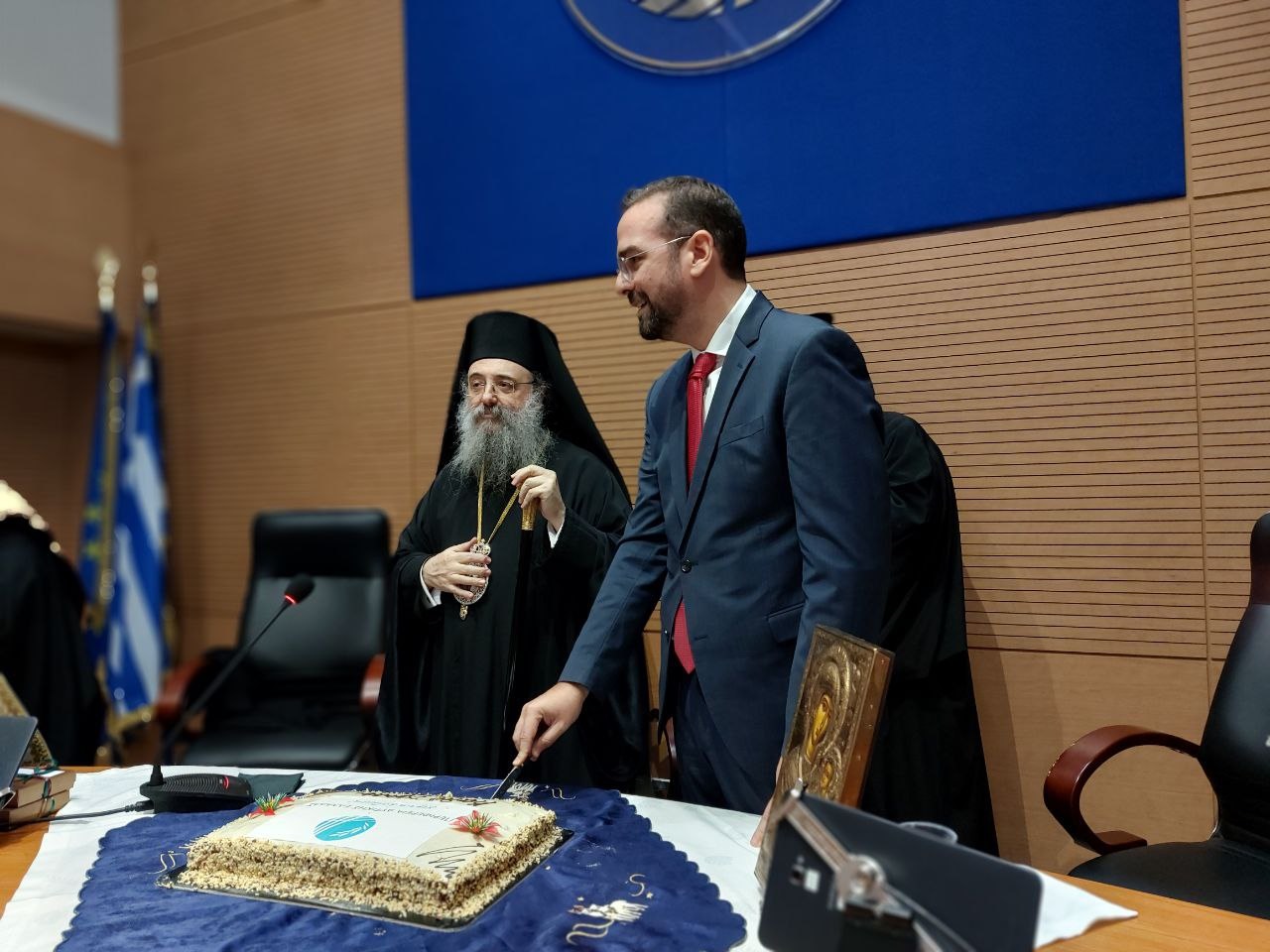 Από την πλευρά του, ο Μητροπολίτης Πατρών ευχήθηκε κάθε καλό και κάθε ευλογία στον Περιφερειάρχη, την Περιφερειακή Αρχή και το νέο Περιφερειακό Συμβούλιο, ευλογημένη, χαρούμενη, υγιεινή και πρόοδο κατά Θεόν χρονιά, ενώ απευθυνόμενος προσωπικά στον Περιφερειάρχη του απεύθυνε τα λόγια του Αποστόλου Παύλου, «ευώδους εσού τω έργω, καθώς ευωδούτε σου η ψυχή».