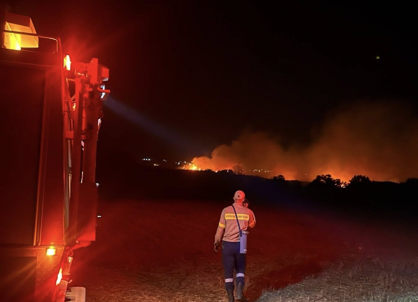 Για την κατάσβεση της φωτιάς επιχειρούν 26 πυροσβέστες με 10 οχήματα, ενώ μέχρι τη δύση του ηλίου είχαν διατεθεί και 5 εναέρια μέσα, που πραγματοποίησαν ρίψεις νερού.