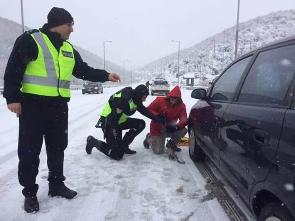 Στα προαναφερόμενα σημεία, η κυκλοφορία των οχημάτων μεγίστου επιτρεπόμενου βάρους κάτω των 3,5 τόνων, διεξάγεται με τη χρήση αντιολισθητικών αλυσίδων ή άλλα ανάλογα αντιολισθητικά μέσα, λόγω χιονόπτωσης.