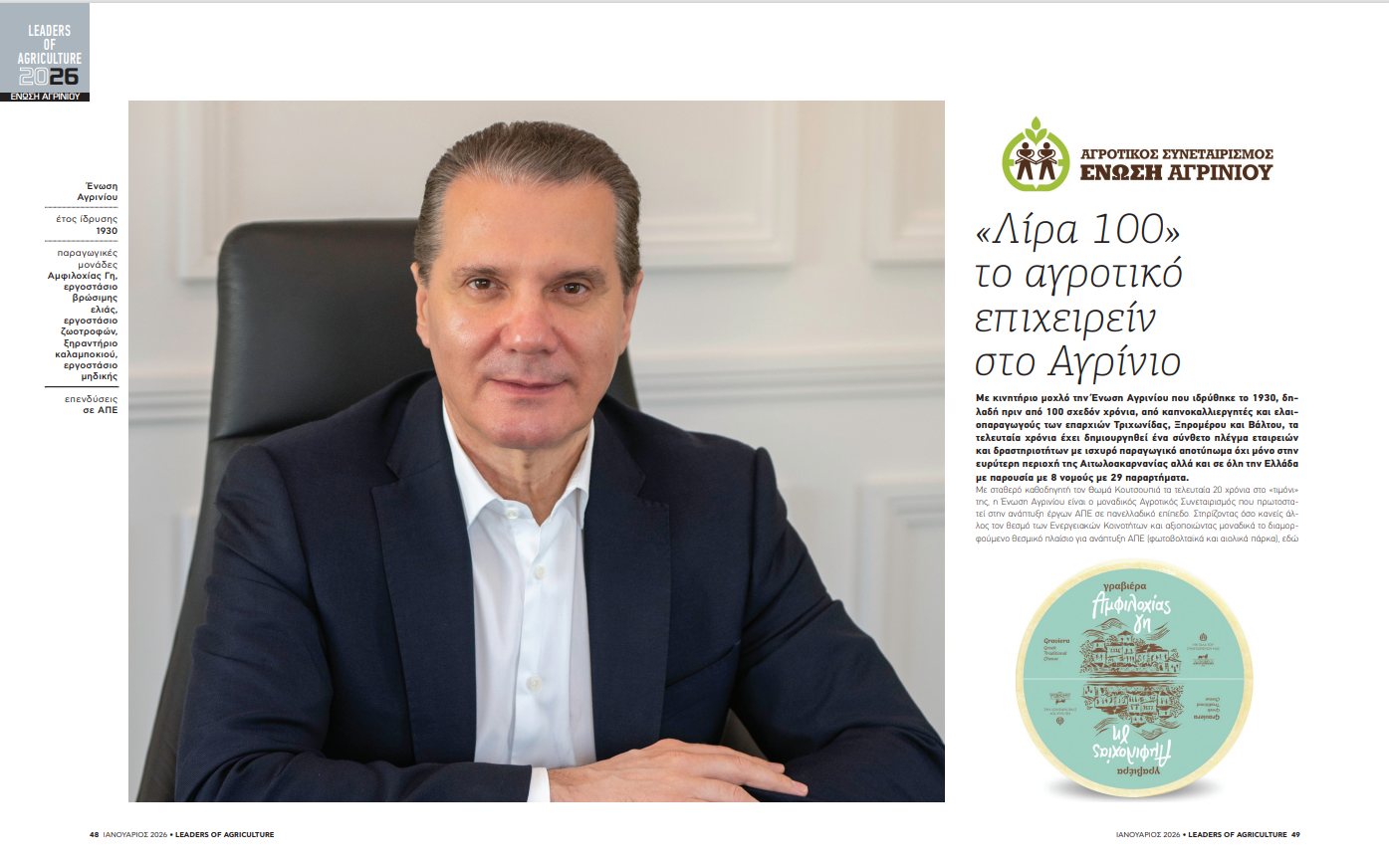 Στη φετινή έκδοση, που κυκλοφορεί πανελλαδικά από το Σάββατο 31 Ιανουαρίου σε έντυπη μορφή μαζί με την εφημερίδα AGRENDA, Η Ένωση Αγρινίου παρουσιάζεται ως ένα χαρακτηριστικό παράδειγμα του πώς η ελληνική περιφέρεια μπορεί να παράγει ανάπτυξη με σχέδιο, επιμονή και καθαρή στρατηγική.