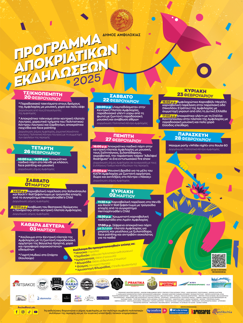Το πρόγραμμα των αποκριάτικων εκδηλώσεων 2025 του Δήμου Αμφιλοχίας: