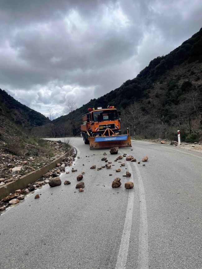 Με συντονισμένες ενέργειες και συνεχή παρουσία στο πεδίο, τα συνεργεία εργάζονται εντατικά για τον καθαρισμό του οδοστρώματος από φερτά υλικά και την απομάκρυνση επικίνδυνων βράχων, διασφαλίζοντας την προσβασιμότητα και την προστασία των διερχόμενων οδηγών.