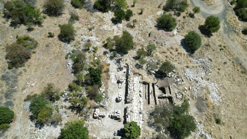 Εναέρια λήψη των δομών που χρησιμοποιούνταν ως κελάρι και μαγειρείο που αναγνωρίστηκαν στη διάρκεια ανασκαφών στην αρχαία πόλη Τιμβριάδα στη Σπάρτη της Μικράς Ασίας.