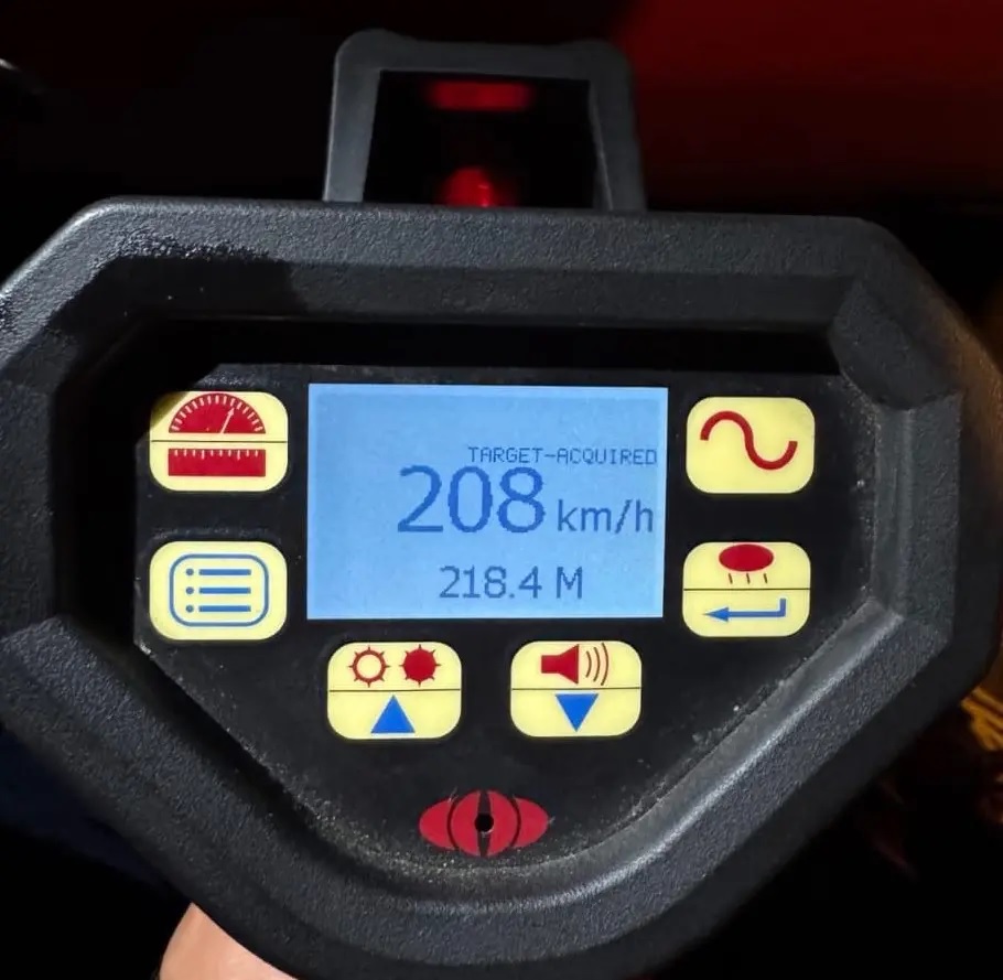Συγκεκριμένα διαπιστώθηκε μέσω συσκευής radar ότι ο 42χρονος κινούνταν με 208 χλμ/ώρα αντί του ανωτάτου επιτρεπομένου ορίου των 130 χλμ/ώρα, με αποτέλεσμα την πρόκληση κινδύνου για τους λοιπούς χρήστες της οδού.