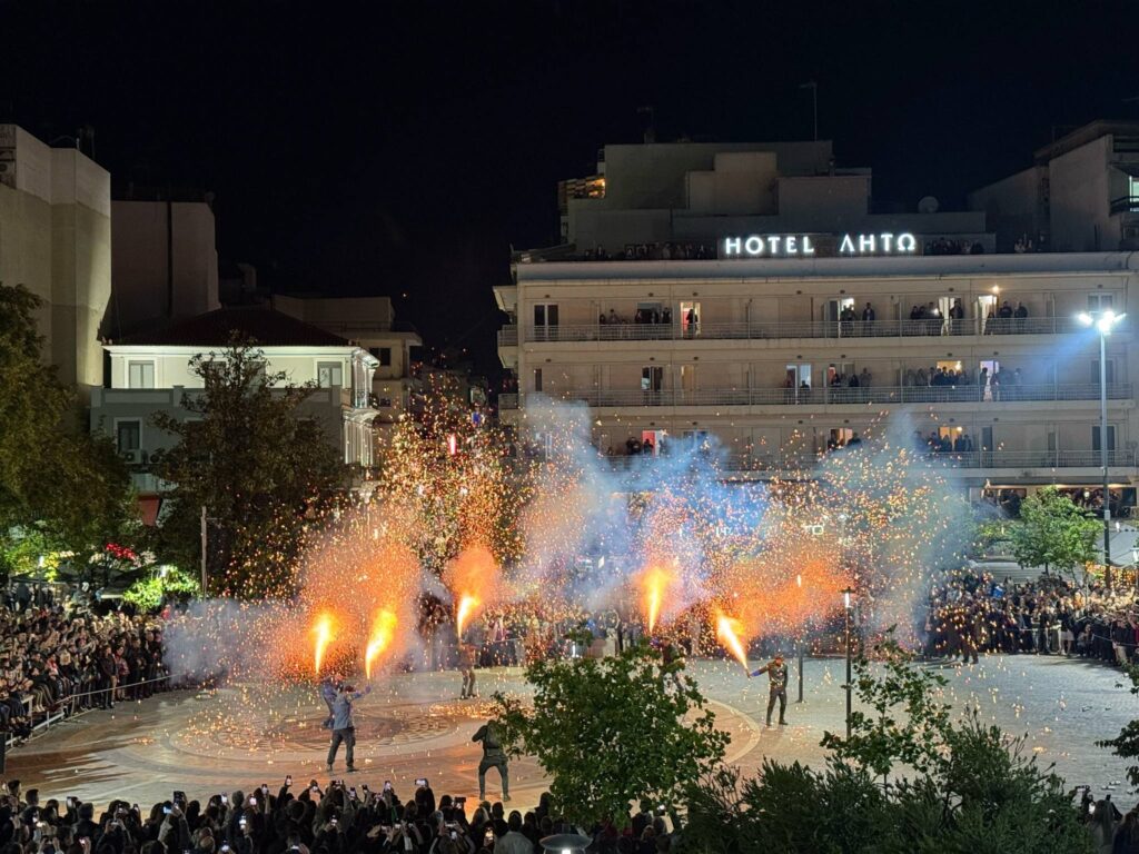 Το ξεχωριστό αυτό έθιμο όπως κάθε χρόνο έτσι και φέτος εντυπωσιάζει μικρούς και μεγάλους που από νωρίς είχαν συγκεντρωθεί για να απολαύσουν το φαντασμαγορικό αυτό θέαμα. Τα χαλκούνια (αυτοσχέδιες εκρηκτικές κατασκευές) φωτίζουν την κεντρική πλατεία, προσφέροντας ένα ξεχωριστό και εντυπωσιακό θέαμα.