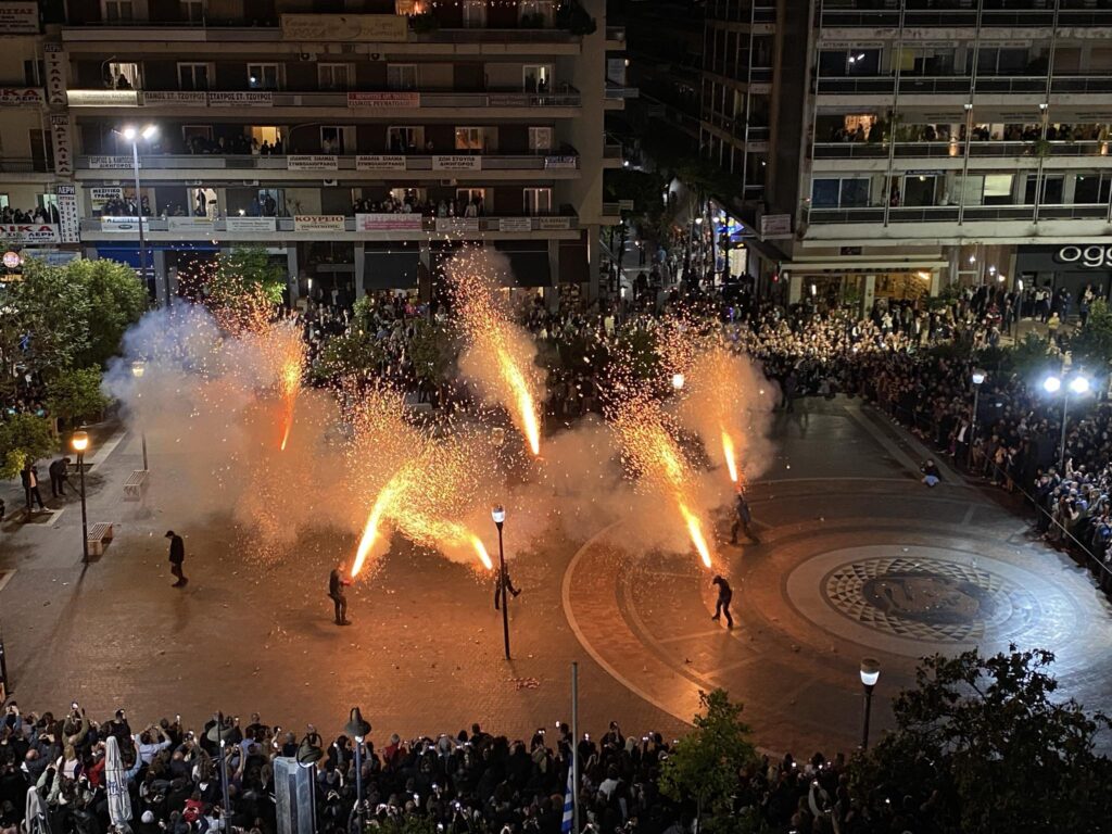 Το ξεχωριστό αυτό έθιμο όπως κάθε χρόνο έτσι και φέτος εντυπωσιάζει μικρούς και μεγάλους που από νωρίς είχαν συγκεντρωθεί για να απολαύσουν το φαντασμαγορικό αυτό θέαμα. Τα χαλκούνια (αυτοσχέδιες εκρηκτικές κατασκευές) φωτίζουν την κεντρική πλατεία, προσφέροντας ένα ξεχωριστό και εντυπωσιακό θέαμα.