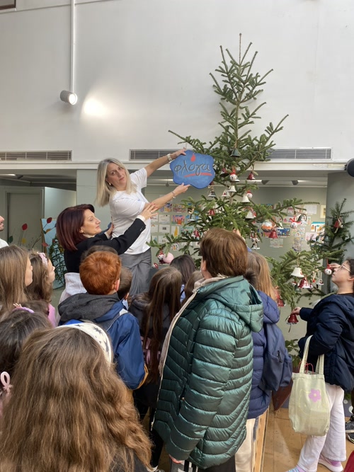 Στη συνέχεια η Αντιδήμαρχος επισκέφτηκε την Παλαιά Δημοτική Αγορά, όπου οι μαθητές του 8ου Δημοτικού Σχολείου Αγρινίου στόλισαν το καθιερωμένο «Δέντρο της Φλόγας», μια δράση, που έχει ήδη εξελιχθεί σε θεσμό και γέμισε τον χώρο με χρώματα, παιδικά χαμόγελα και το ουσιαστικό μήνυμα της προσφοράς. Η Αντιδήμαρχος, υπογράμμισε ότι «η αγνότητα και ο ενθουσιασμός των παιδιών μάς θυμίζουν κάθε χρόνο τον πραγματικό λόγο των Χριστουγέννων: την ελπίδα, την αγάπη και την αλληλοστήριξη ».
