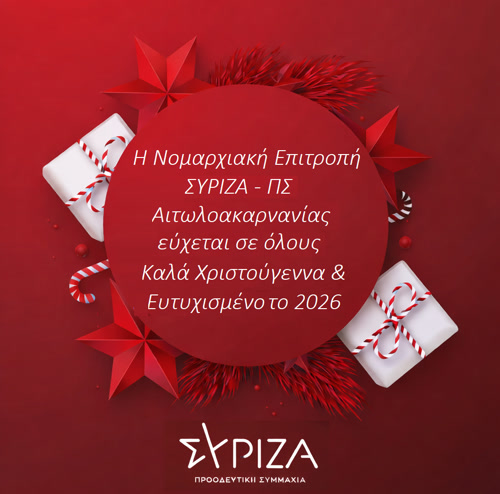 Σας ευχόμαστε Καλά Χριστούγεννα με υγεία, ζεστασιά και αγάπη και το 2026 να είναι μια χρονιά ελπίδας, προόδου και κοινωνικών νικών.