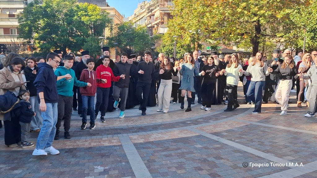 Το μεσημέρι όλοι μαζί, πεντακόσια περίπου μέλη των κατηχητικών συνάξεων Γυμνασίου – Λυκείου, με τη συνοδεία των ιερέων – υπευθύνων νεότητος και των κατηχητών, συγκεντρώθηκαν σε πολυχώρο εστίασης, όπου συμμετείχαν στο εορταστικό γεύμα που παρέθεσε ο Σεβασμιώτατος προς τιμήν τους. Τραγούδησαν και χόρεψαν παραδοσιακούς χορούς, διασκέδασαν και έγιναν μια μεγάλη οικογένεια.