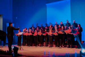Η βραδιά ολοκληρώθηκε όταν ο μαέστρος κάλεσε στη σκηνή μαθητές, παλαιούς χορωδούς και συνεργάτες, ώστε να κλείσουν όλοι μαζί την εορταστική συναυλία.
