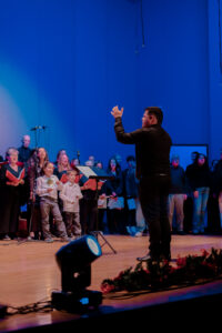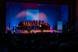 Η βραδιά ολοκληρώθηκε όταν ο μαέστρος κάλεσε στη σκηνή μαθητές, παλαιούς χορωδούς και συνεργάτες, ώστε να κλείσουν όλοι μαζί την εορταστική συναυλία.