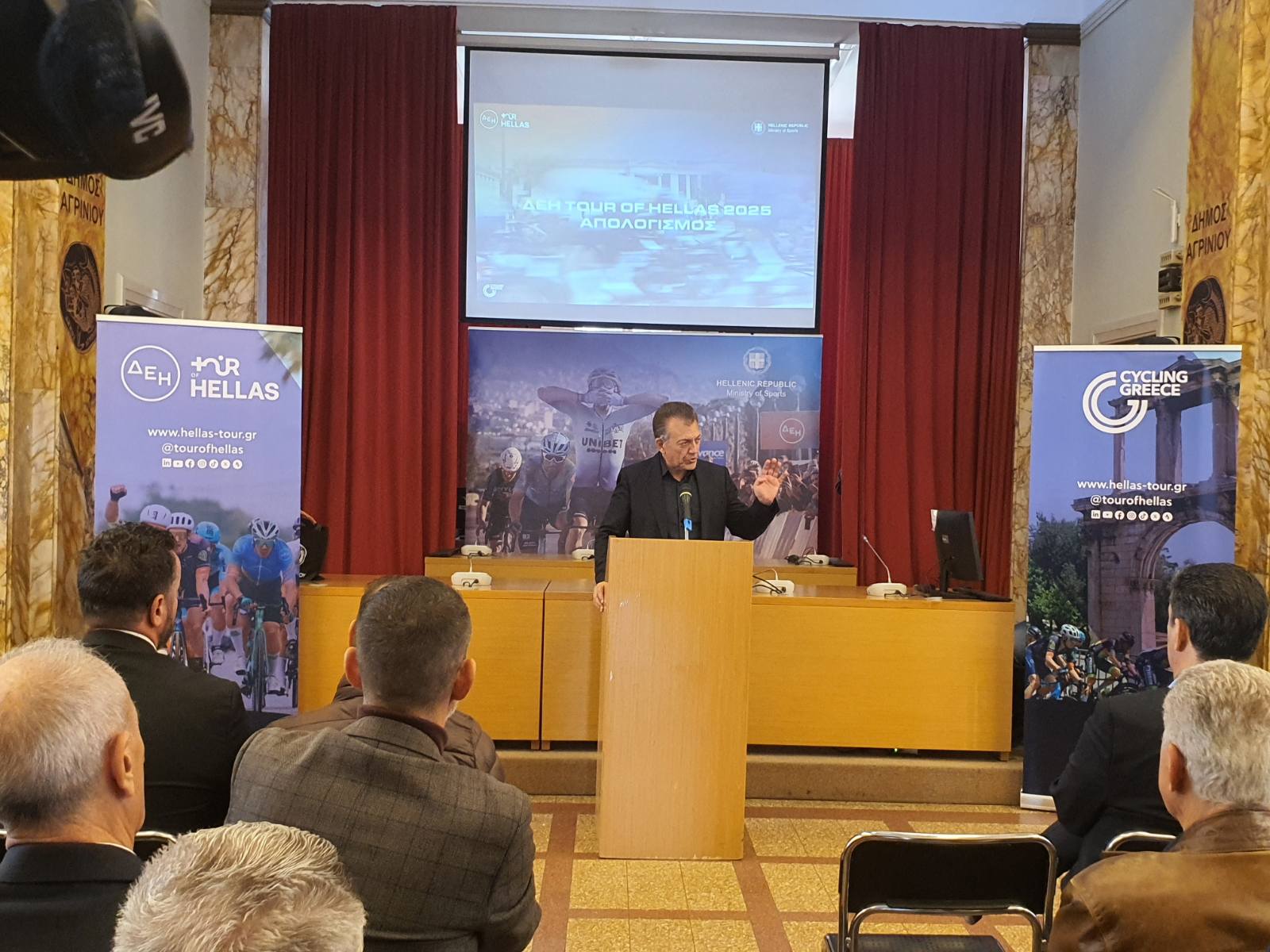 Ο Αναπληρωτής Υπουργός Παιδείας, Θρησκευμάτων και Αθλητισμού, Γιάννης Βρούτσης και η Οργανωτική Επιτροπή Αγώνων Ποδηλασίας – Cycling Greece, διοργάνωσαν την απολογιστική παρουσίαση του ΔΕΗ Tour of Hellas 2025, στην Αίθουσα Δημοτικού Συμβουλίου Αγρινίου (Αναστασιάδη 1, πρώην Τράπεζα της Ελλάδος).